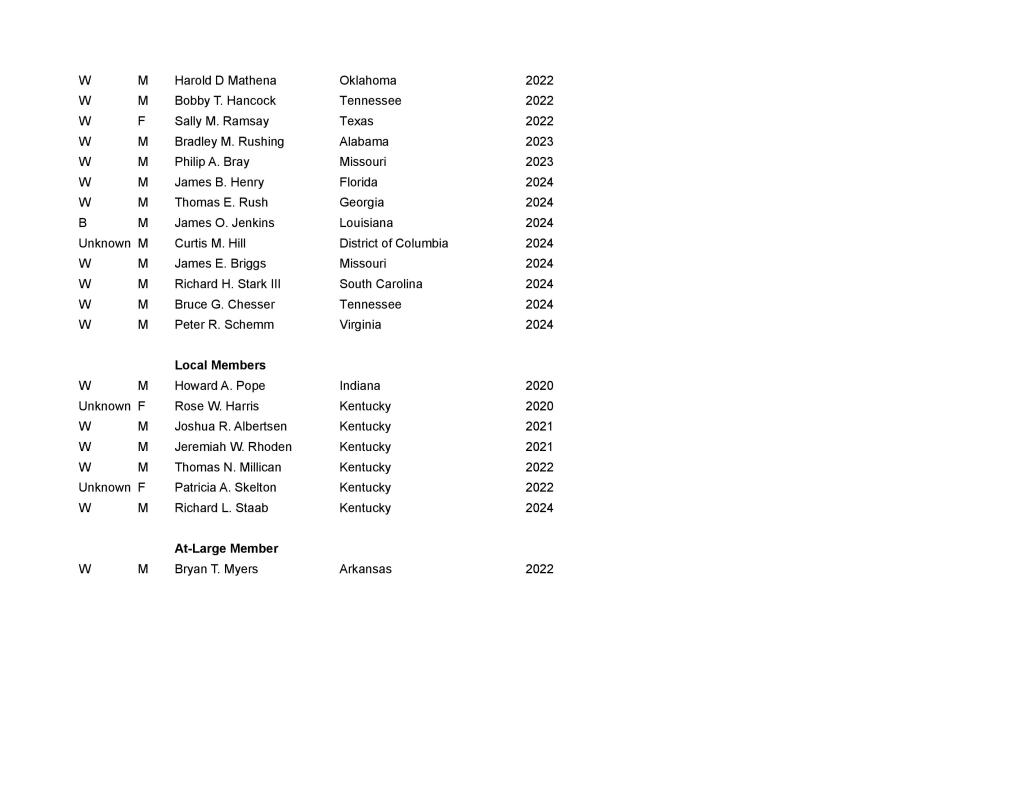 Now read the demographic makeup of the same group. Mind you, out of the 41 listed state, local, and at-large members of the board, four of them could not be determined to be either white or black. What I could determine is listed below.